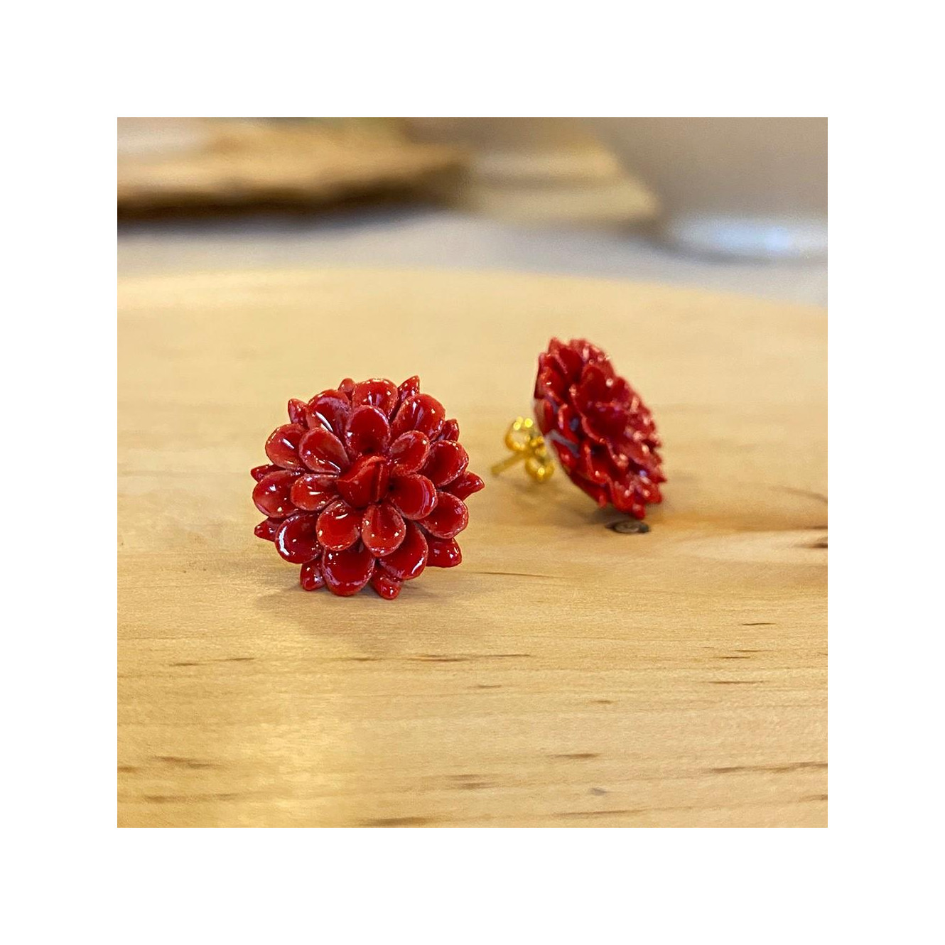 Ceramistas artesanos de Valencia elaboran estas piezas en porcelana de alta gama.Dorado antialergénico.Modelo: Dalia.Color: coral.Medidas: diámetro 1,7 cm