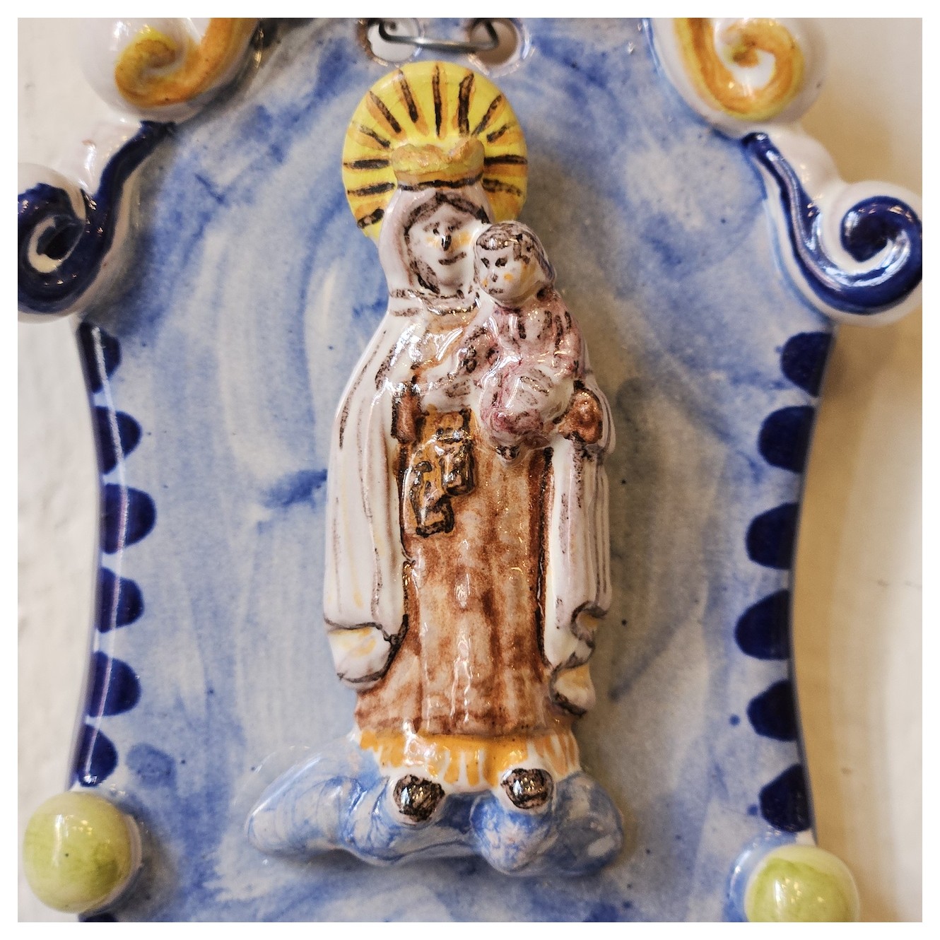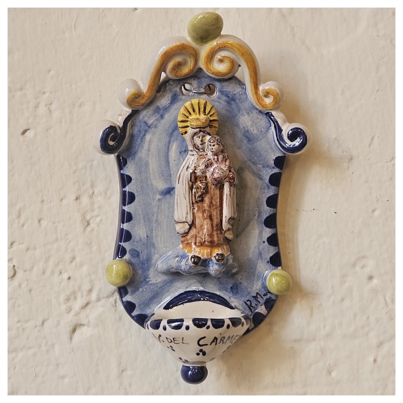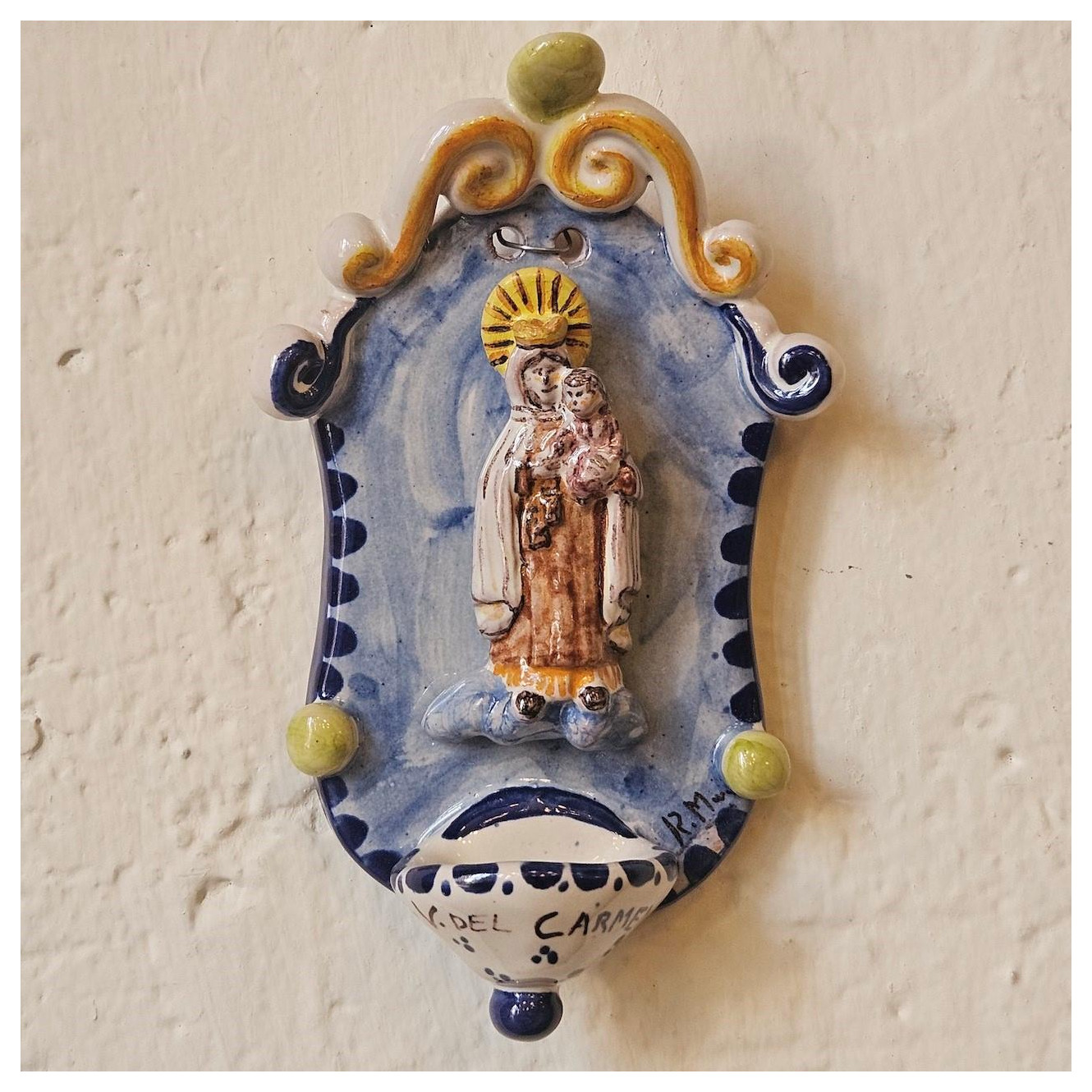 Esta Virgen del Carmen, está realizada por las manos de un artesano de Manises.