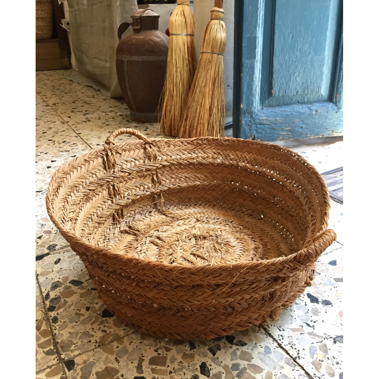 Capazo vintage.PIEZA ÚNICAMedidas:largo 55cm - ancho 52cm - alto 20cm (sin asas)Ø
