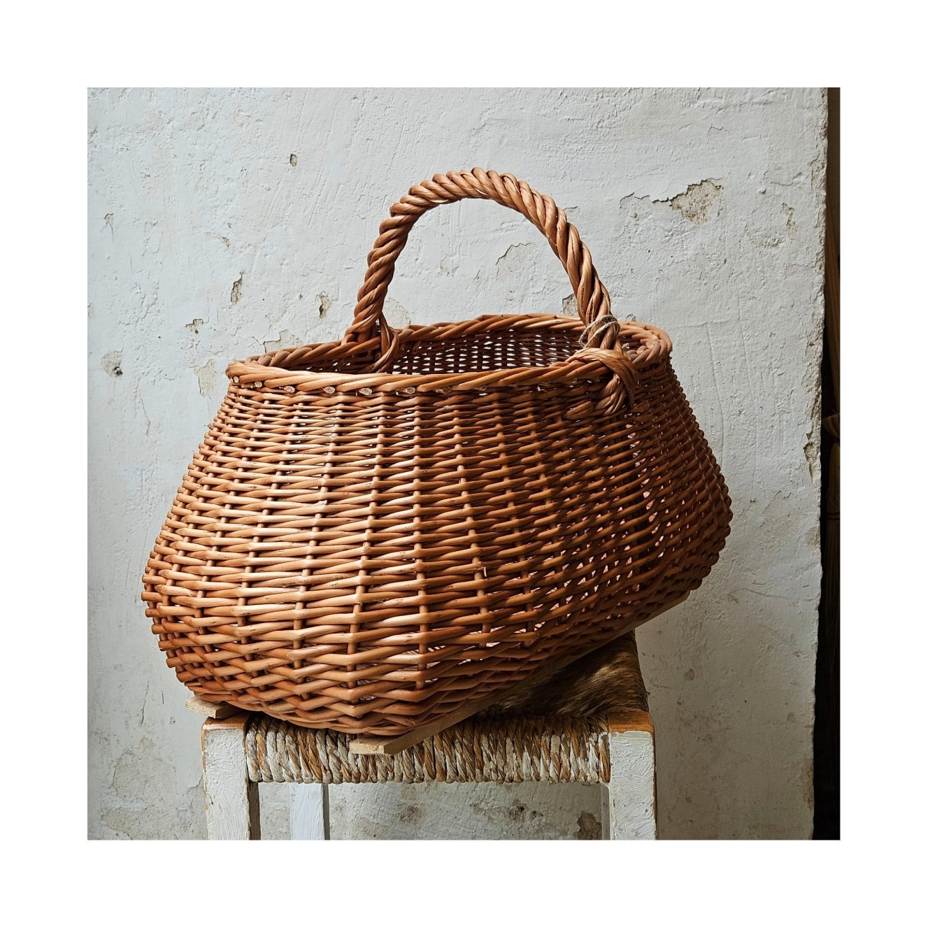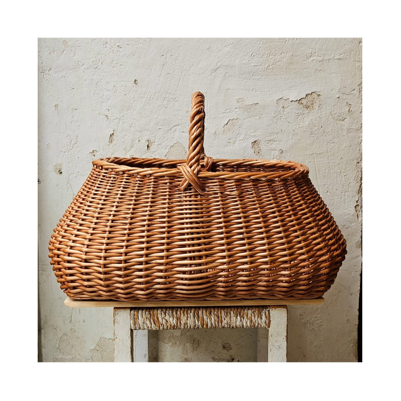 Cesta realizada en esparto por artesanos andaluces. También podemos hacerla en el tamaño que desees, por encargo. Medidas: largo 44 cm - ancho 21 cm - alto sin asas 26 cm - alto con asas: 44 cm