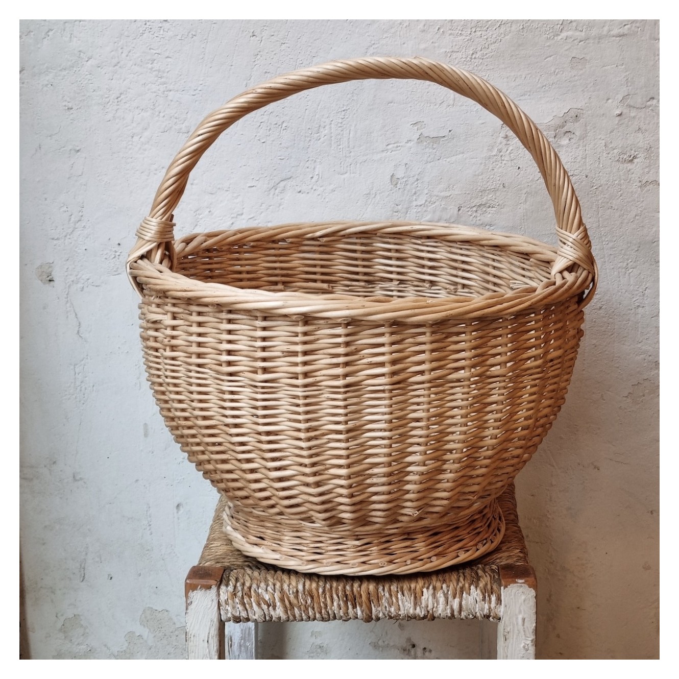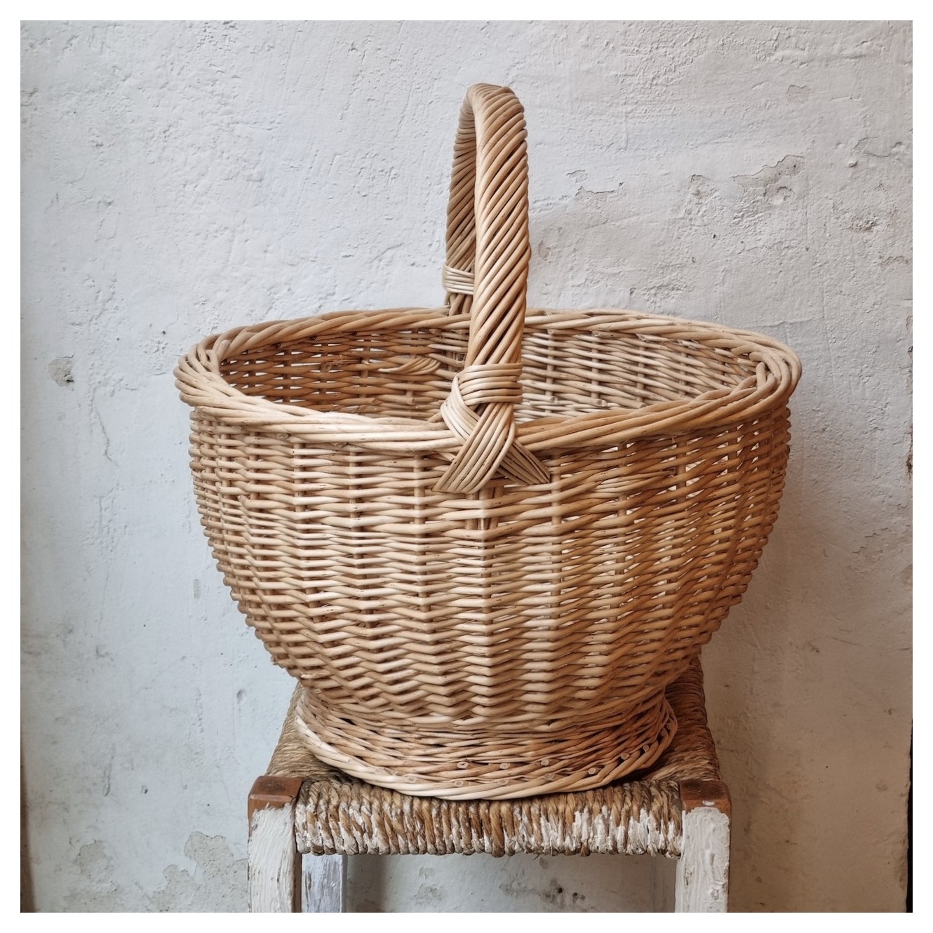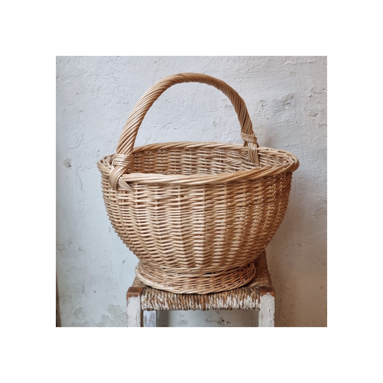 Cesta de mimbre claro con peana . Realizada a mano por artesanos de la Ruta del Mimbre en Cuenca.Medidas: Ø superior 41cm - alto 30cm (sin asa)