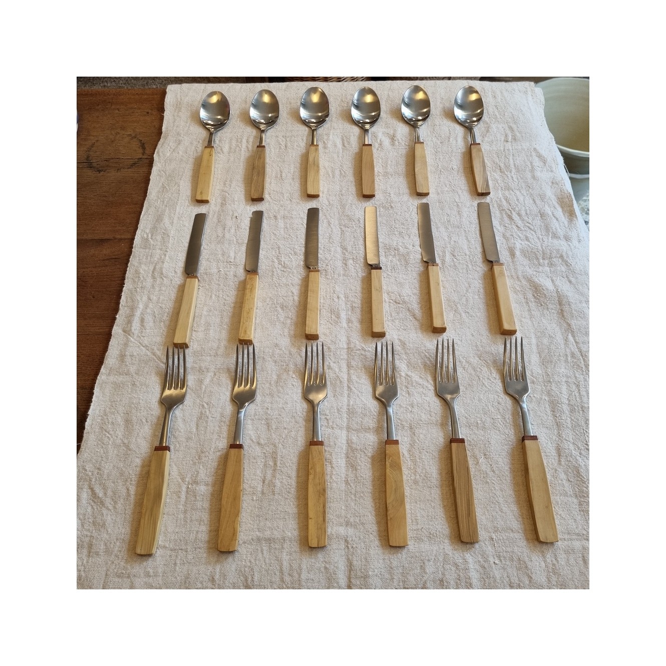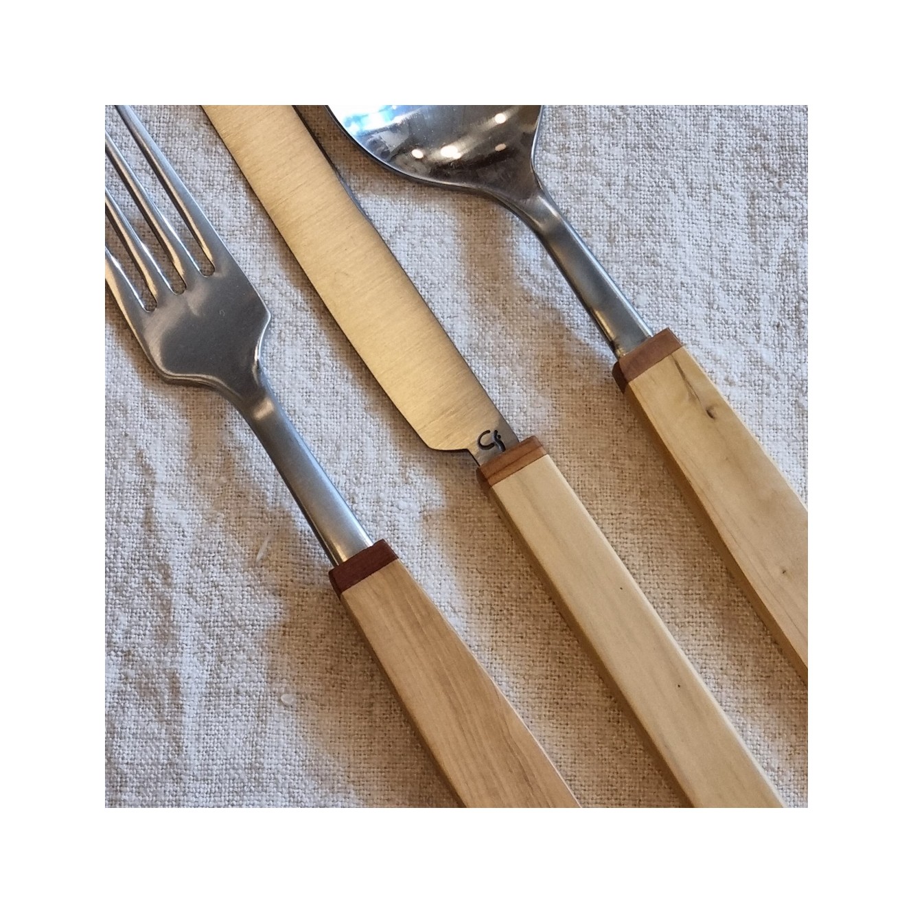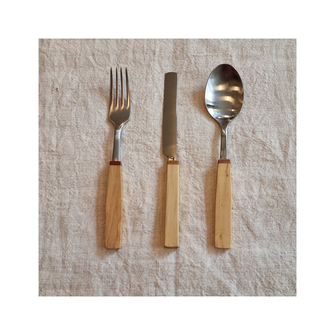 Cubertería completa de mesa, compuesta de cuchara, tenedor y cuchillo.